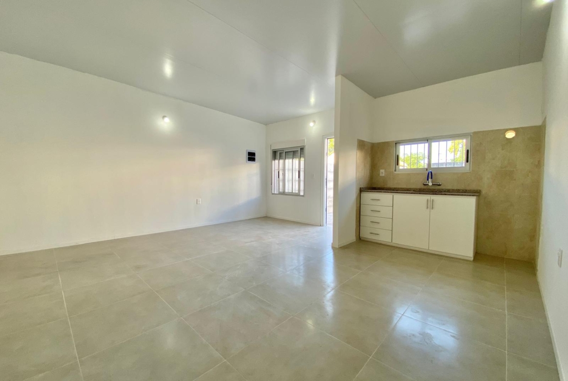 SE ALQUILA IMPECABLE CASA AL FONDO A ESTRENAR, DE 2 DORMITORIOS, AMPLIO LIVING-COMEDOR CON COCINA INTEGRADA, BAÑO